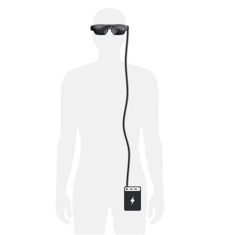 Note: This is a portable charger that can be used to charge any device, including all our products. The Denali Glasses model can use this as a power source when recording video and can give it 10x the battery life.
